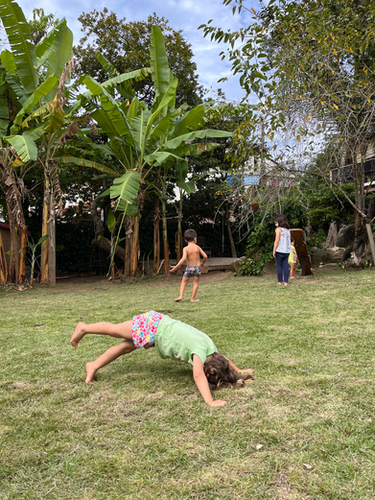 O Brincar Livre é o coração da infância e ocupa um lugar central em nosso dia a dia. As imagens aqui mostram crianças profundamente envolvidas em seu brincar, criando mundos, histórias e movimentos sem interferência direta do adulto. É nesse estado de presença, imaginação e concentração que a criança se desenvolve integralmente o corpo, a emoção e o pensamento, aprendendo de forma natural e verdadeira.
